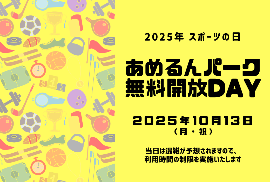 10月13日(月・祝)スポーツの日は無料開放を行います。